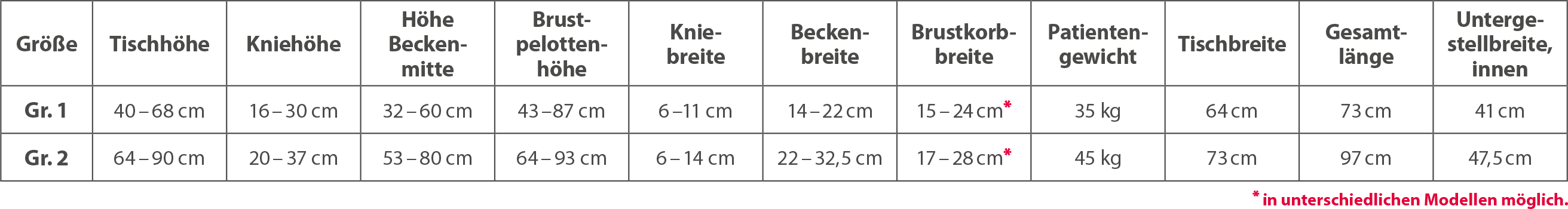 - Vielfältige Fußschalen, Rücken-, Knie- und Beckenpelotten für einen sicheren Stand